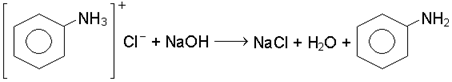 3.У пробiрку наливають 5 мл анiлiну i приблизно такий же об'єм соляної кислоти. Реакцiя проходить з видiленням тепла. Охолоджують пробiрку в холоднiй водi. Видiляються кристали солi - солянокислий анiлiн. Хiмiзм процесу: