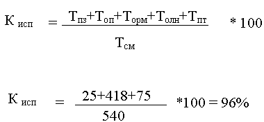 ПЗ=5+15+3+2=25 ОП=20+30+20+10+25+75+5+85+120+18+10=418 ОЛН=5+60+5+5=75 НТД=5+17=22 Прежде всего, проанализируем, насколько эффективно используется рабочее время. Для этого используем формулу фактического коэффициента использования рабочего времени: