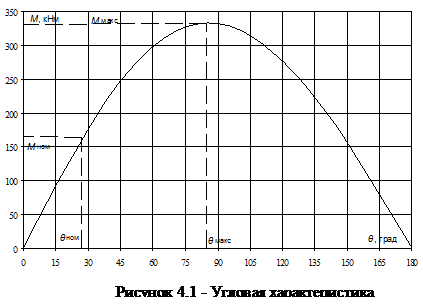Подставляя найденные данные в уравнение получим угловую характеристику синхронного двигателя (рисунок 4.1). Номинальный угол и определяется для номинального момента и=15,5 є. Перегрузочная способность двигателя по моменту определяется отношением