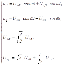где Mf – максимальное значение взаимной индукции. Преобразование токов статора к осям d-q осуществляется в соответствии с выражениями