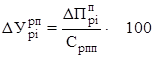 где РП0, РП1 - объем реализованной продукции (работ, услуг), за вычетом всех налогов и других отчислений, включаемых в объем реализации, по базовому и отчётному годам; Срп0,Срп1 - себестоимость реализованной продукции по базовому и отчётному годам. За счёт изменения объёма реализации продукции: