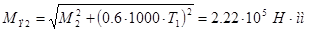 Рис.5.2. Схема нагружения и эпюры ведущего вала редуктора. Опасными сечениями вала могут быть сечение (1) или (2).рассмотрим каждое сечение в отдельности. Сечение (1): изгибающий момент: эквивалентный момент: предел текучести материала вала: эквивалентное напряжение в опасном сечении: Сечение (2): изгибающий момент: эквивалентный момент: эквивалентное напряжение в опасном сечении: сравнив