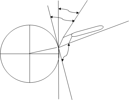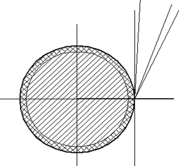 РЕШЕНИЕ: 1.Изобразим схему действительной установки резца, расположив его выше оси центров на величину · Изобразим поперечное сечение обрабатываемой детали, которое · будет представлять собой круг, диаметром D=45мм. · Изобразим действительное положение резца - выше горизонтальной оси на величину · на окружности изображенного сечения.