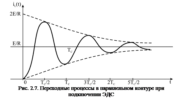 Колебательном контуре. Рассмотрим переходные процессы при подключении источника постоянного ЭДС к параллельному колебательному контуру (рис