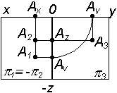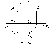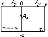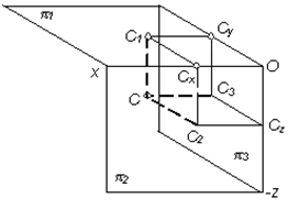 Таким образом, на основании теории Г. Монжа, можно преобразовать пространственное изображение образа (точки) в плоскостное. Эта теория основывается на следующих положениях: 1. Все пространство делится на 4 четверти с помощью двух взаимно перпендикулярных плоскостей p1 и p2, либо на 8 октантов при добавлении третьей взаимно-перпендикулярной плоскости p3. 2. Изображение пространственного образа на эти плоскости получается с помощью прямоугольного (ортогонального) проецирования. 3. Для преобразования пространственного изображения в плоскостное считают, что плоскость p2 – неподвижна, а плоскость p1 вращается вокруг оси x так, что положительная полуплоскость p1 совмещается с отрицательной полуплоскостью p2, отрицательная часть p1 – с положительной частью p2. 4. Плоскость p3 вращается вокруг оси z (линии пересечения плоскостей) до совмещения с плоскостью p2 (см. рис. 2.31). Изображения, получающиеся на плоскостях p1, p2 и p3 при прямоугольном проецировании образов, называются проекциями. Плоскости p1, p2 и p3 вместе с изображенными на них проекциями, образуют плоскостной комплексный чертеж или эпюр. Линии, соединяющие проекции образа ^ осям x, y, z, называются линиями проекционной связи. Для более точного определения образов в пространстве может быть применена система трех взаимно перпендикулярных плоскостей p1, p 2, p 3. В зависимости от условия задачи можно выбрать для изображения либо систему p1, p2, либо p1, p2, p3. Систему плоскостей p1, p2, p3 можно соединить с системой декартовых координат, что дает возможность задавать объекты не только графическим или (вербальным) образом, но и аналитическим (с помощью цифр). Такой способ изображения образов, в частности точки, дает возможность решать такие позиционные задачи, как: · расположение точки относительно плоскостей проекций (общее положение, принадлежность плоскости, оси); · положение точки в четвертях (в какой четверти расположена точка); · положение точек относительно друг друга, (выше, ниже, ближе, дальше относительно плоскостей проекций и зрителя); · положение проекций точки относительно плоскостей проекций (равноудаление, ближе, дальше). Метрические задачи: · равноудаленность проекции от плоскостей проекций; · отношение удаления проекции от плоскостей проекций (в 2–3 раза, больше, меньше); · определение расстояния точки от плоскостей проекций (при введении системы координат). Размещено на Allbest.ru