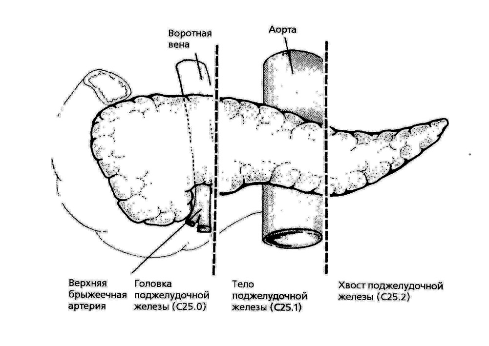 Рис. 20. Анатомические области поджелудочной железы. К.Виттекинд, 2007г.