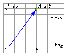 Таким образом мы построим взаимнооднозначное соответствие между всеми комплексными числами и всеми точками плоскости. Если такое соответствие построено, то координатная плоскость называется комплексной плоскостью. Очень важной является интерпретация комплексного числа z = a + ib как вектора