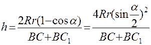 Из (4.3) и (4.5) имеем mgh= Найдем h. Пусть l – длина нитей подвеса (рисунок 2), R – расстояние от центра платформы до точек крепления нитей на ней, r – радиус окружности, на которой лежат точки крепления нитей к основанию. Из рисунка 2 видим, что h=OO1=BC-BC1= В свою очередь. Поэтому