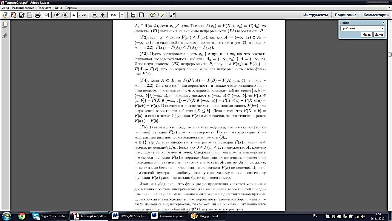 Нормальное распределение, также называемое гауссовым распределением, гауссианой или распределением Гаусса — распределение вероятностей, которое задается функцией плотности распределения: где параметр μ — среднее значение (математическое ожидание) случайной величины и указывает координату максимума кривой плотности распределения, а σ ² — дисперсия. Нормальное распределение играет важнейшую роль во многих областях знаний, особенно в статистической физике. Физическая величина, подверженная влиянию значительного числа независимых факторов, способных вносить с равной погрешностью положительные и отрицательные отклонения, вне зависимости от природы этих случайных факторов, часто подчиняется нормальному распределению, поэтому из всех распределений в природе чаще всего встречается нормальное (отсюда и произошло одно из названий этого распределения вероятностей). Нормальное распределение зависит от двух параметров — смещения и масштаба, то есть является с математической точки зрения не одним распределением, а целым их семейством. Значения параметров соответствуют значениям среднего (математического ожидания) и разброса (стандартного отклонения). Стандартным нормальным распределением называется нормальное распределение с математическим ожиданием 0 и стандартным отклонением 1. 55.Функция распределения и её свойства