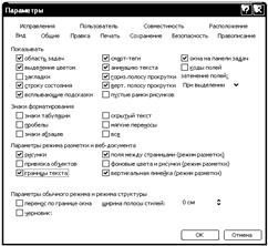 Рисунок 17 – Диалоговое окно «Параметры» (вкладка Вид) Для оформления таблицы выделите таблицу (строку, столбец), а затем в строке меню щёлкните на команде Таблица ð Нарисовать таблицу (рисунок 18):