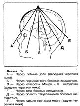 Рис 29. Ангиографические стадии болезни мойя-мойя по Suzuki J. (1986). Нейросонография Размеры желудочковой системы могут определятся методом ультразвуковой нейросонографии. Измерения желудочковой системы проводятся как в коронарных, так и парасагиттальных плоскостях сканирования (рис.1). В коронарных плоскостях исследования вентрикулометрию проводят в сечении на уровне отверстий Монро и III желудочка. По этой методике измеряют поперечный размер передних рогов, косой размер переднего рога с каждой стороны, поперечный размер III желудочка. Исследование может производится как в стандартных чрезродничковых коронарных плоскостях, так и в транскраниальных парасагиттальных плоскостях сканирования (рис. 2).