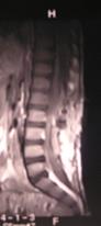 Рис. 44. МР-томограммы позвоночника пациента с гнойным эпидуритом грудного и поясничного отдела (1,2 слева), послеоперационная рана – заживление вторичным натяжением (справа).