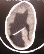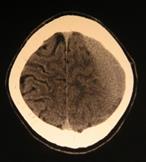 Рис.43 (а, б). а – МР-томограмма головного мозга пациента с субдуральной гематомой головного мозга; б – КТ пациента с эпидуральной гематомой.