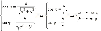 Заметим, что во внутренних скобках стоят формулы косинуса и синуса суммы аргументов. Поэтому