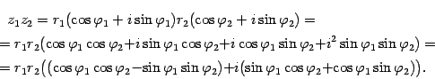 Последняя запись является тригонометрической формой комплексного числа z1 z2. Значит,