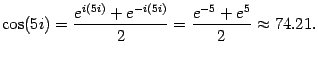 Пример. Комплексное число записано в показательной форме Найдите его алгебраическую форму. Решение: По формуле Эйлера С помощью формулы Эйлера можно определить показательную функцию комплексного аргумента. Пусть z = a + bi. Тогда Например, Заменим в формуле Эйлера Сложив последнюю формулу с формулой Эйлера, получим: Откуда Пример. Вычислить Решение: Таким образом, в комплексной области модуль косинуса может быть и больше 1.
