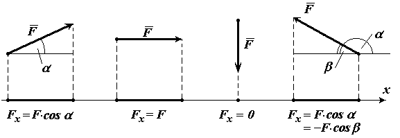 Длина (или модуль) вектора Проекцией вектора на ось называется скалярная величина, которая определяется отрезком, отсекаемым перпендикулярами, опущенными из начала и конца вектора на эту ось. Проекция вектора считается положительной (+), если направление ее совпадает с положительным направлением оси, и отрицательной (-), если проекция направлена в противоположную сторону (см. рис.6).