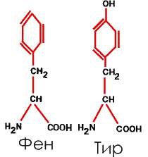 5. Ароматические, с бензольными кольцами в боковых радикалах – фенилаланин (Фен или Фал) и тирозин (Тир)