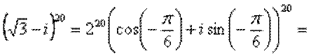 Решение. 1) Представим число По формуле Муавра получим: 2) Имеем: 3)