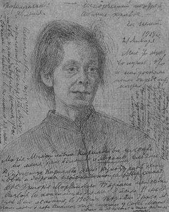 Рис. 109. Один из многочисленных портретов пациентов клиники, зарисованный маниакальной художницей.