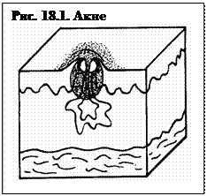 Характерные признаки акне – появление открытых и закрытых комедонов, а также воспалительных элементов (папулы, пустулы) на участках, богатых сальными железами. Этиология и патогенез акне до сих пор изучены недостаточно. Развития вульгарных угрей способствуют наследственная предрасположенность, нарушения функции желез внутренней секреции, патология пищеварительного тракта, гиповитаминозы, нарушения диеты (употребление избыточного количества жиров, углеводов, раздражающей пищи). Благоприятным фоновым состоянием для развития угревой сыпи является себорея. В закрытых сверху протоках сальных желез создаются анаэробные условия, благоприятные для размножения и активной жизнедеятельности сапрофитной флоры, в частности Propionibacterium acne. Эти микроорганизмы выделяют липазы, способствующие расщеплению липидов с выделением большого количества свободных жирных кислот. Изменение состава кожного сала ведет к повышению рН кожи в щелочную сторону. Это уменьшает бактерицидные свойства кожного сала и способствует дальнейшему росту и размножению как самих Р acne, так и других бактерий (эпидермальный стафилококк, золотистый стафилококк). В патогенезе акне большую роль играют нейропептиды — БАВ белковой природы, выделяющиеся из нервных окончаний в ответ на различные стимулы.