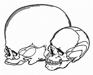 Рис. 4.1. Череп современного человека и человека будущего (по: А. П. Быстрову, 1957).