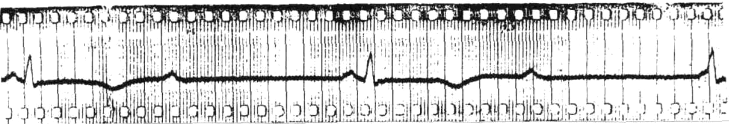 Жалобы и анамнез заболевания: Больная 82 лет поступила в клинику с жалобами на общую слабость, быструю утомляемость, головокружение, одышку при ходьбе, отеки на ногах, повторные приступы потери сознания. Перечисленные жалобы появились постепенно 3 месяца назад. Участковый врач объяснил недомогание "возрастом", не обследовал больную, терапии не назначил. Самочувствие ухудшалось, перестала выходить из дома. Неделю назад внезапно стало "плохо", потеряла сознание. Очнулась на полу. Сколько времени длилось это состояние - не знает, дома никого не было. Подобные приступы повторились еще два раза. Вновь обратилась к участковому врачу и с диагнозом "Хроническая цереброваскулярная недостаточность" госпитализирована. В прошлом - практически здоровый человек. Ничем серьезным не болела, до последнего времени была активна и бодра. Объективно: состояние средней тяжести, бледна, акроцианоз, пульсация шейных сосудов. Пульс 39 в 1 минуту, ритмичный, удовлетворительного наполнения. АД 170/80 мм рт ст. Границы относительной сердечной тупости умеренно расширены влево, тоны сердца приглушены. В легких дыхание жесткое, печень на 2 см выступает из-под реберной дуги, чувствительная при пальпации. Отеки нижней трети голеней.