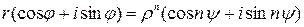Из условия равенства комплексных чисел, заданных в тригонометрической форме, следует: 1)равенство модулей 2)аргументы могут отличаться на слагаемое, кратное Отметим, что в полученном выражении для аргумента ψ смысл имеют значения Следовательно,