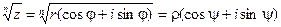 Замечание. С помощью арктангенса угол j находится с точностью до периода тангенса (180° = p).Чтобы не сделать ошибку, записать угол не числа z, а числа –z, рекомендуется отметить положение комплексного числа на плоскости и после этого выбрать k=0 или 1, дающее верный угол. Определение. Числа