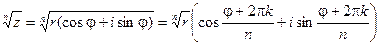 Таким образом, корень n – ой степени из комплексного числа имеет n различных значений. Показательная форма комплексного числа.