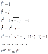 Выражение называется мнимой единицей. Графически комплексное число изображается точкой на комплексной плоскости или радиус-вектором этой точки. Ось абсцисс называется вещественной осью, ось ординат – мнимой осью. (Рис. 1.1) Рассмотрим значения степеней мнимой единицы