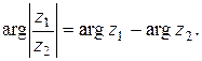 Однако не все решения этого уравнения являются решениями (7). Среди всех значений аргумента комплексного числа выбирается одно, которое называется главным значением аргумента и обозначается В тригонометрической форме удобно производить операции умножения и деления. Теорема 1. Модуль произведения комплексных чисел