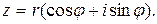 Формулы (6) задают так называемую тригонометрическую форму записи комплексного числа. Из (5) следует, что если