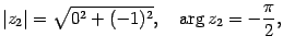 Последняя запись называется тригонометрической формой комплексного числа. В отличие от нее запись числа в виде Отметим, что тригонометрическая форма -- это указание числа по двум его характеристикам: модулю и аргументу. Поэтому вместо формулы (17.8) можно было бы просто записывать пару Замечание 17.3 При записи числа в тригонометрической форме НЕЛЬЗЯ вычислять значения Пример 17.5 Запишите в тригонометрической форме числа Решение. Находим модуль, аргумент, а затем выписываем тригонометрическую форму: