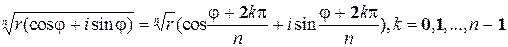 Определение. Корнем натуральной степени n из комплексного числа Теорема. (Извлечение корня) Корень степени n из комплексного числа