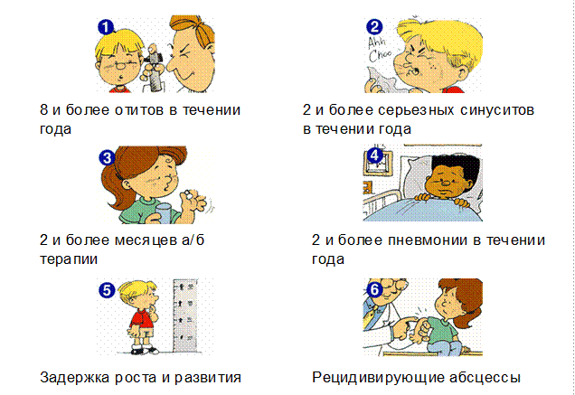 Наука о первичных иммунодефицитах (ПИД) – один из быстро развивающихся разделов иммунологии. В настоящее время описано более 80 различных форм ПИД, для 20 из них идентифицированы генные дефекты (делеции генов, кодирующих синтез тяжелых цепей иммуноглобулинов, рецепторы Т-лимфоцитов, мутации генов, кодирующих синтез ИЛ, ферментов и компонентов комплемента, мутации, ведущие к потере МНС-антигенов и др., например, тяжелый комбинированный иммунодефицит, связанный с Х-хромосомой обусловлен дефектом гена, кодирующего рецептор к ИЛ-2), описаны новые механизмы развития ПИД. Фактором, ограничивающим изучение ПИД, является относительная их редкость в популяции (от 1:1000 до 4:1000000), а также дороговизна современных научных исследований. В настоящее время создано Европейское общество по ПИД, которое регистрирует все сведения о больных с ПИД. Первичные иммунодефициты – это состояния, при которых нарушения иммунных механизмов связаны с генетическими дефектами (порок развития иммунной системы). В зависимости от уровня поражения и локализации дефекта различают следующие виды первичных иммунодефицитов: · Преимущественно гуморальные; · Преимущественно клеточные; · Комбинированные; · Наследственно обусловленные дефекты антигеннеспецифических факторов защиты (фагоцитоз, система комплемента и т.д.) · Нарушения в системе ИЛ и кооперации клеток в иммунном ответе. Существуют и другие классификации, в основу которых положен генетический блок развития иммунной системы. Блок 1 – отсутствуют стволовые клетки, поэтому организм ребёнка практически беззащитен. Не образуются Т, В лимфоциты. Ребёнок обречён. Блок 2 – полное выключение клеточного звена иммунитета. Больные больше подвержены инфекции вирусной природы, которые приводят к гибели. У них в 1000 раз выше риск возникновения опухолей, организм не отторгает чужой трансплантат. Блок 3 – «молчит» гуморальный иммунитет, АТ не вырабатываются, склонность к бактериальной инфекции. Блок 4 – снижено число плазмоцитов, синтезирующих Ig G. Блок 5 – уменьшено число плазмоцитов, синтезирующих Ig А. Блок 6 – затронуты процессы созревания и выхода Т лимфоцитов в периферические лимфоцитарные органы и кровяное русло. Сочетанная патология. Частота врожденных форм иммунодефицитов колеблется в широких пределах: · Гуморальная недостаточность – 50-75% · Комбинированные дефекты – 10-25% · Дефекты фагоцитов – 10-12% · Дефекты клеточного иммунитета – 5-10% · Дефекты белков комплемента – 1% ИДС: НАСТОРАЖИВАЮЩИЕ АСПЕКТЫ ¨ Частые заболевания верхних дыхательных путей: дошкольники: 9 (удваивается при посещении д/с); школьники: 5-6; взрослые: 3-4; ¨ Повторные кожные гнойные процессы; ¨ Упорная молочница у детей старше 1 года; ¨ Атипичные возбудители (пневмоциста и др.); ¨ Повторные поносы; ¨ Позднее отпадение пуповины (более 2 недель); ¨ Частый жидкий стул, кровавые поносы; ¨ Геморрагический синдром у ребенка первых месяцев жизни; ¨ БЦЖит, вакцинальная инфекция; ¨ “Отсутствие” л/у, гипотрофия миндалин; ¨ Наличие кровнородственных браков; ¨ Неясные случаи смерти новорождённых и грудных детей в этой семье.