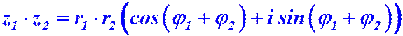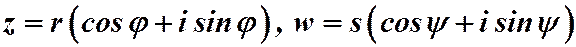 1) Умножение. При умножении двух комплексных чисел, заданных в тригонометрической форме, их модули перемножаются, а аргументы складываются, то есть: