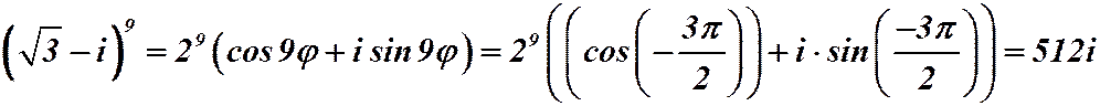 Ответ: 3)Возведение в степень. При возведении в степень комплексного числа, заданного в тригонометрической форме, модуль числа нужно возвести в п-ю степень, а аргумент умножить на число п, то есть: