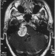 Глиобластома - достаточно злокачественная глиальная опухоль. Встречается у взрослых, чаще у мужчин в височной доле головного мозга. Имеет большое количество сосудов, артериовенозных шунтов, быстрое ин-сультоподобное течение, возможны кровоизлияния в опухоль. Продолжительность жизни в таком случае не превышает 9-12 мес. Олигодендроглиома - доброкачественная опухоль, растет медленно в глубине лобной доли мозга. Имеют место петрификаты, определяемые на краниограммах. Эпендимома это опухоль из клеток эпендимы, которая выстилает желудочки мозга и центральный спинномозговой канал. Внутричерепная локализация встречается у лиц молодого возраста, опухоль растет в полость желудочка, содержит обызвествления, определяется на краниограмме. Спи-нальная эпендимома встречается преимущественно у взрослых, напоминает веретено, распространяется вдоль спинного мозга. Папиллома хориоидного сплетения растет из нейроэпителия сосудистых сплетений бокового или четвертого желудочка у детей. Доброкачественная, имеет экспансивный рост. Среди опухолей центральной нервной системы у детей около 20 % составляет медуллобластома. Эмбриональная опухоль червя и полушарий мозжечка прорастает в полость четвертого желудочка. Отличается быстрым инфильтратииным ростом и метастазированием по ликворным путям. Невринома доброкачественная опухоль из оболочек черепных (VIII пара, реже V пара;) или спиннномозговых нервов. Имеет медленный рост, не склонна к малигнизации.