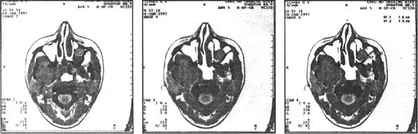 Радикулярные кисты челюстей встречаются наиболее часто и возникают при развитии хронического воспалительного процесса в периапекальных тканях. Почти одинаково часто они обнаруживаются как у мужчин, так и у женщин. Наибольшее число кист обнаруживается в возрасте от 20 до 50 лет. Радикулярные кисты на верхней челюсти встречаются несколько чаще, чем на нижней, соответственно: 56% (на верхней) и 44% (на нижней челюсти). Радикулярные кисты развиваются из эпителиальных островков Маляссе. При воздействии воспалительного процесса, происходит пролиферация эпителиальных клеток, располагающихся в околокорневой гранулеме с последующим образованием кисты. Либо, под влиянием химических веществ образующихся при воспалении, в эпителиальном пролифирате, формируются микроскопические полости, которые постепенно наполняются кистозным содержимым и сливаясь формируют кистозное образование. Радикулярные кисты склонны к медленному, экспансивному росту, вызывая при этом атрофию челюстной кости. При длительно существующей кисте возможно формирование костного дефекта и прорастание кисты в мягкие ткани. Клиника. Корневую кисту, как правило, обнаруживают в области «периодонтитного» или ранее леченого зуба, а так же зуба подвергавшегося травме, реже в области удаленного зуба (резидуальная киста). Для начального периода развития кисты характерным является отсутствие каких либо клинических симптомов, за исключением симптомов характерных для периодонтита(при его обострении). Киста растет медленно, в течение многих месяцев и даже лет. На нижней челюсти первые признаки деструкции костной ткани обнаруживаются на вестибулярной поверхности альвеолярного отростка, они характеризуются пролабированием кисты под слизистую оболочку и ее выбухание. Если киста исходит от корней второго или третьего моляра нижней челюсти, то она может располагаться ближе к язычной поверхности, т.к. с другой стороны имеется мощный слой компактной и губчатой кости. Нервно-сосудистый пучок на нижней челюсти оттесняется кистой по мере ее роста, в патологический процесс не вовлекается В случае возникновения кисты от зуба, корень которого обращен в сторону неба, наблюдается истончение и даже рассасывание небной пластинки. Киста, развивающаяся в границах верхнечелюстной и носовой полостей, распространяется в их сторону. Кисты челюстей редко вызывают деформацию лица. Осмотр выявляет сглаженность или выбухание переходной складки свода преддверия полости рта округлой формы с довольно четкими границами. При локализации на небе отмечают ограниченную припухлость. Кожа и покрывающая кисту слизистая оболочка в цвете не изменяются. Регионарные лимфатические узлы не увеличиваются. При пальпации костная ткань над кистой прогибается, при резком истончении определяют так называемый пергаментный хруст (симптом Дюпюитрена), в случав отсутствия кости — флюктуацию. При наличии значительного дефекта кости челюсти под слизистой оболочкой пальпируется костное окно. Может наблюдаться конвергенция (схождение, сближение) коронок рядом расположенных зубов. Перкуссия "причинного" зуба дает тупой звук. ЭОД интактных зубов, расположенных в зоне кисты выявляет снижение электровозбудимости (пульпа реагирует на ток силой более 6-8 мА) вследствие сдавления кистой нервных окончаний. Нагное