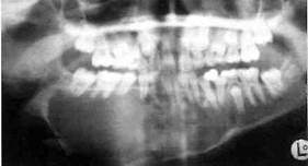Гигантоклеточная опухоль имеет гистогенетическое различие с другими костными новообразованиями, может поражать различные кости скелета. Встречается в 25% случаев от всех костных опухолей и опухолеподобных поражений челюстных костей. Чаще поражается тело нижней челюсти в области премоляров. Она является истинной доброкачественной опухолью, т.к. для нее характерно: солитарное поражение, постояный рост, возможность рецидивов, озлокачествления и метастазирования. Опухоль развивается внутрикостно, отмечается характерный кровоток с образованием в центре ее кровяных "озера", с замедленным движением крови. Клиника. На ранних этапах опухоль клинически себя не проявляет. Обнаруживается по выбуханию челюсти (в вестибулярную, реже язычную и небную стороны) и подвижности зубов, или случайно при рентгенологическом обследовании. Опухоль растет медленно, безболезненно. Покровные ткани над опухолью не изменяются, однако возможен цианоз слизистой оболочки. При пальпации определяется плотное, гладкое или бугристое безболезненное образование, подвижность и смещение зубов. При пункции получают кровянисто-бурую жидкость, без холестериновых кристаллов. Патанатомия. Макроскопически гигантоклеточная опухоль представлена обильно кровоточащим мягкотканным образованием красно-бурого цвета. Микроскопически обнаруживается богато васкуляризованная ткань, состоящей из веретенообразных или овоидных клеток и многочисленных патологических гигантских клеток типа остеокластов, которые равномерно распределены по опухолевой ткани, небольшое количество коллагена.