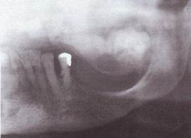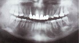R- картина. В трубчатых костях отмечается разволокнение кортикальных пластинок, склероз губчатого вещества, образуя пятнисто-очаговый "ватный" рисунок. В черепных костях швы почти не определяются. В челюстных костях, кроме типичного "ватного" рисунка определяется преобладание явлений гиперплазии костной ткани, определяется прерывание нижнечелюстного канала в начальном отделе. Отмечается множественная ретенция зубов, сужение периодонтальной щели прорезавшихся зубов.