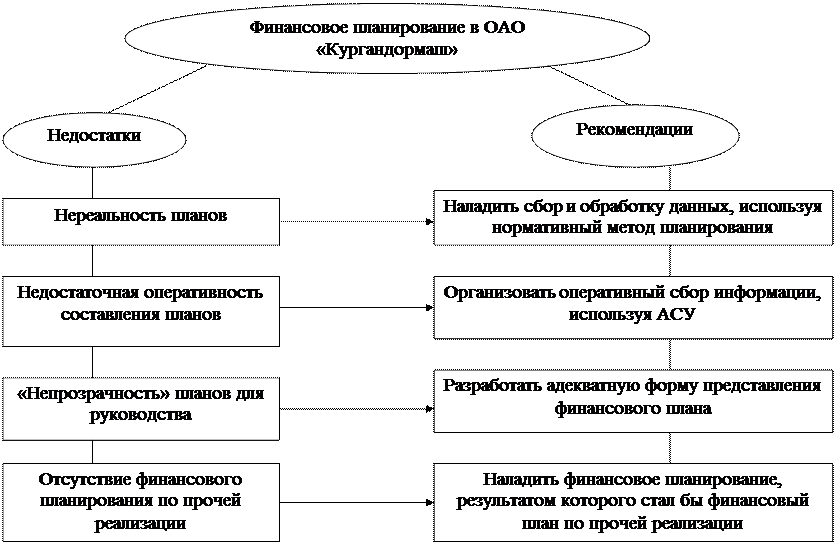 Рисунок 5 - Недостатки финансового планирования в ОАО «Кургандормаш» и рекомендации по их устранению
