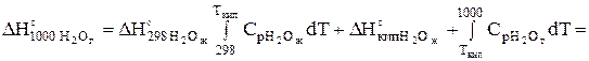 Выбираем [1, 2] уравнения мольной изобарной теплоемкости исходных и конечных веществ реакции в температурном интервале от 298 К до заданной температуры. Эти уравнения необходимы для определения Для реакции Mg+H2O=MgO+H2 при 1000 К эти уравнения следующие: