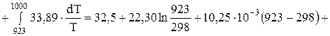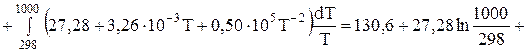 Для (1) изменение энергии Гиббса реакции при 1000 К равна: