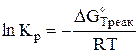 где Кр – константы равновесия реакции при постоянном давлении р и заданной температуре Т оС при Кр>1 реакция идет слева направо; при Кр<1 реакция идет справа налево; при К=1 в реакции устанавливается динамическое равновесие);