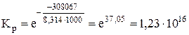Для (1) константа равновесия Кр равна: