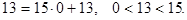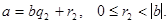 Теорема (о делении с остатком): Для любых двух целых чисел а и b существует и притом единственная пара чисел q и r, для которых