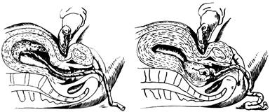 1. У першому періоді пологів відбувається поступове згладжування шийки і розкриття зовнішнього зіву шийкового каналу до ступеню, достатнього для зігнання плоду з порожнини матки. Згладжування шийки і розкриття зовнішнього зіву відбувається під впливом родових перейм. Під час перейм у мускулатурі тіла матки відбуваються такі процеси: скорочення м’язових волокон - контракція; зміщення м’язових волокон, що скорочуються, зміна взаємного розміщення їх - ретракція. М’язові волокна, які лежать до перейм одне за одним по довжині, вкорочуються, всуваються в шар сусідніх волокон, лягають поряд одне з одним. У проміжках між переймами зміщення м’язових волокон зберігається. При наступних скороченнях матки ретракція м’язових волокон посилюється, що приводить до дедалі більшого потовщення стінок матки. Крім того, ретракція спричинює розтягнення нижнього сегменту матки, згладжування шийки і розкриття зовнішнього зіву шийкового каналу. Відбувається це тому, що поздовжні м’язові волокна тіла матки, які скорочуються, відтягають колову (циркулярну) мускулатуру шийки матки в боки і вгору (дистракція шийки); при цьому відбувається розширення каналу шийки матки, яке збільшується з кожними переймами. Розкриттю шийки матки сприяє переміщення навколоплідних вод у бік каналу шийки матки. При кожних переймах мускулатура матки тисне на вміст плодового яйця, головним чином на навколоплідні води. Внаслідок рівномірного тиску з боку дна і стінок матки навколоплідні води спрямовуються в бік внутрішнього зіву каналу шийки матки, де опору немає. Під напором навколоплідних вод нижній полюс плодового яйця відшаровується від стінок матки і заглиблюється разом з навколопліною рідиною у внутрішній зів каналу шийки матки. Частину оболонок, яка заглиблюється разом з навколоплідною рідиною в канал шийки матки, називають плодовим міхуром. Під час перейм плідний міхур напружується і дедалі глибше вклинюється в канал шийки матки, розширюючи його зсередини. Таким чином, процес розкриття зіву здійснюється за рахунок: - розтягування колової мускулатури шийки (дистракція), яке відбувається в зв’язку з скороченням поздовжніх м’язів тіла матки; - заглиблення напруженого плодового міхура, який розширює зів, діючи подібно до гідравлічного клина. Головне, що приводить до розкриття шийки матки, це скоротлива діяльність матки; перейми зумовлюють і дистракцію шийки, і підвищення внутрішньоматкового тиску, в результаті якого відбуваються напруження плідного міхура і вклинення його в зів. Внаслідок ретракції і вкорочення поздовжніх м’язів матка ніби сповзає з плідного яйця, спрямовуючись угору. Проте це сповзання обмежується зв’язковим апаратом матки. Круглі, крижово-маткові і часково широкі зв’язки утримують матку, яка скорочується, від надмірного зміщення вгору. Напружені круглі зв’язки вдається промацати в породіллі через черевну стінку. У зв’язку з зазначеною дією зв’язкового аппарату сила скорочень матки використовується для просування плодового яйця донизу. При ретракції матки розтягується не тільки шийка, а й нижній сегмент матки. Нижній сегмент, який складається з перешийка і найбільш нижнього відділу тіла матки, порівняно тонкостінний, м’язових елементів у ньому менше, ніж у верхньому сегменті матки. Розтягнення нижнього сегменту починає