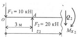 Решение. Последовательно по участкам нагружения рассматриваем внутренние силовые факторы в сечениях